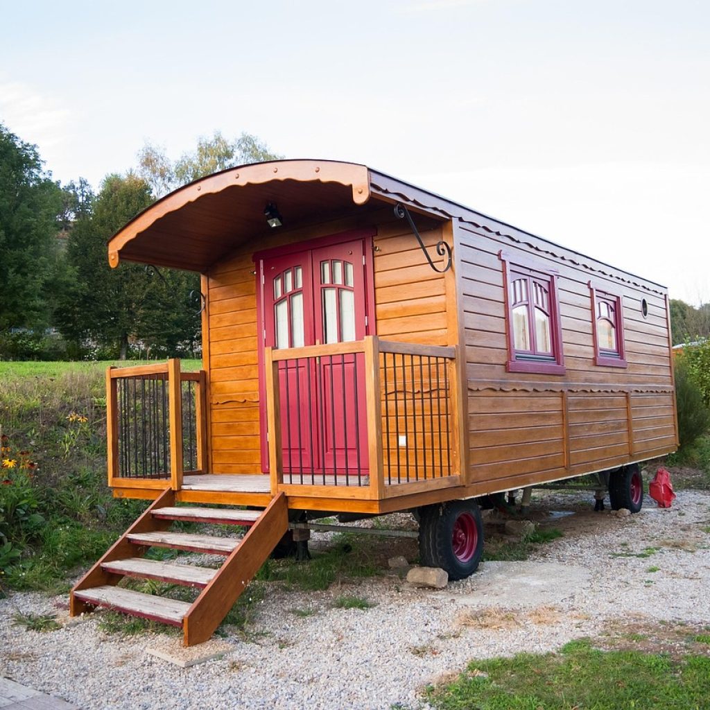 La roulotte a une esthétique bohème et nomade, avec des formes arrondies, du bois sculpté, des couleurs. La tiny house est généralement plus architecturale, plus rectiligne, plus contemporaine. Les deux sont compactes et en bois, mais l’atmosphère est très différente. La roulotte a plus de chaleur et de caractère artisanal ; la tiny house plus de design et d’organisation spatiale.