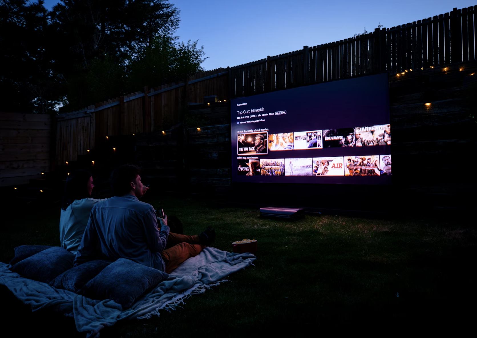 Cinéma privé : écran géant outdoor + système audio dédié.